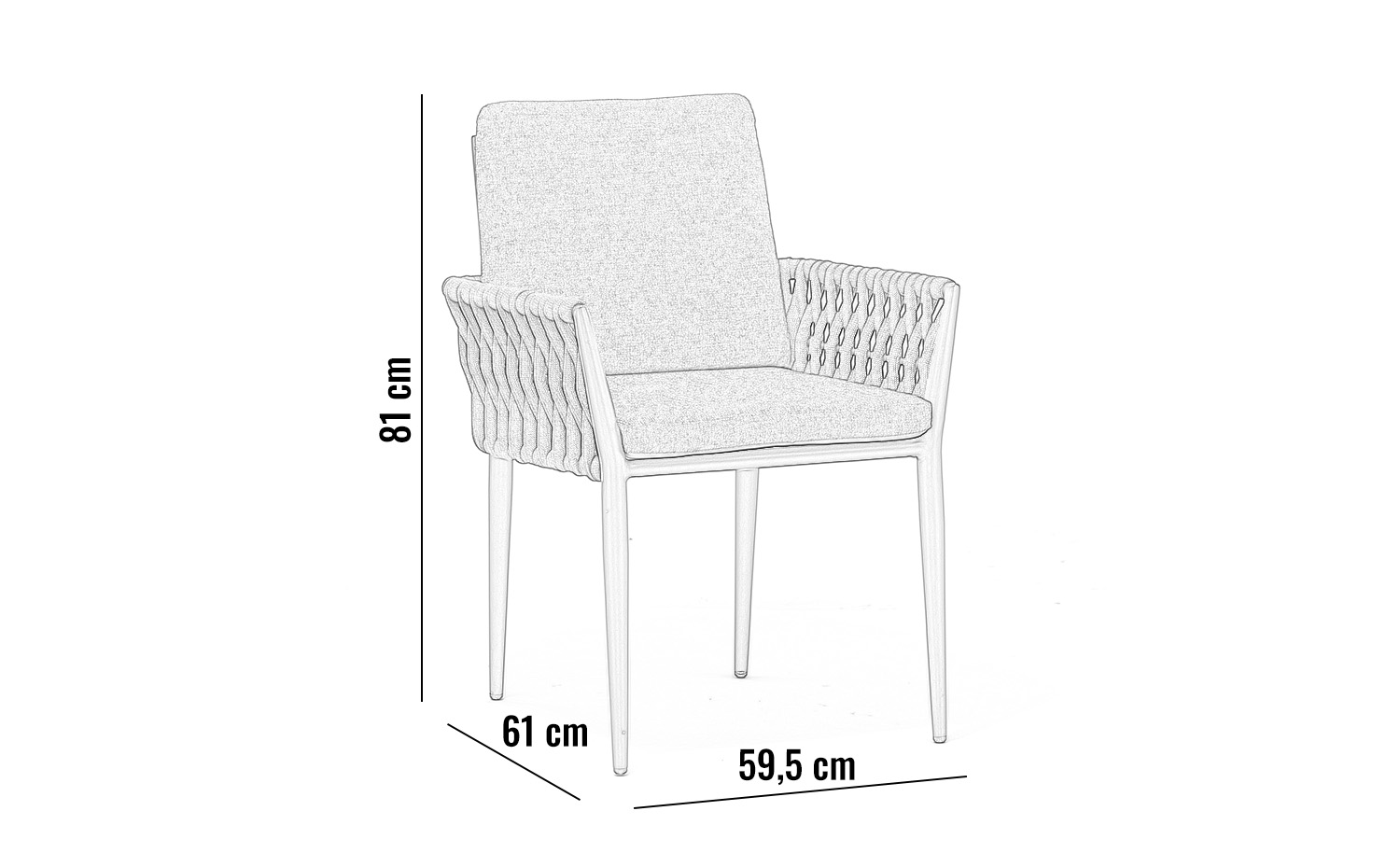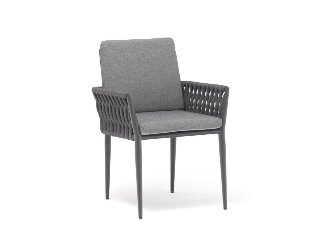 Rám z práškově lakovaného hliníku je odolný proti korozi, lehký a pevný. Výplet z pleteného lana s elastickým vnitřkem zajišťuje pružnost, dlouhou životnost a atraktivní vzhled. Potahy z akrylové tkaniny s voděodolným TPU nátěrem chrání polstrování před vlhkostí a usnadňují údržbu.