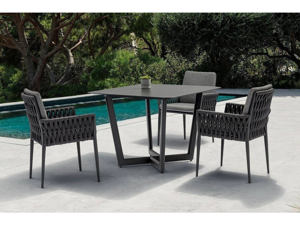 Antracitová barevnost působí sofistikovaně a snadno se kombinuje s dalšími prvky kolekce HUG i jiným zahradním nábytkem.